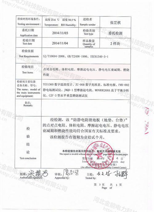 防靜電膠墊檢測報告